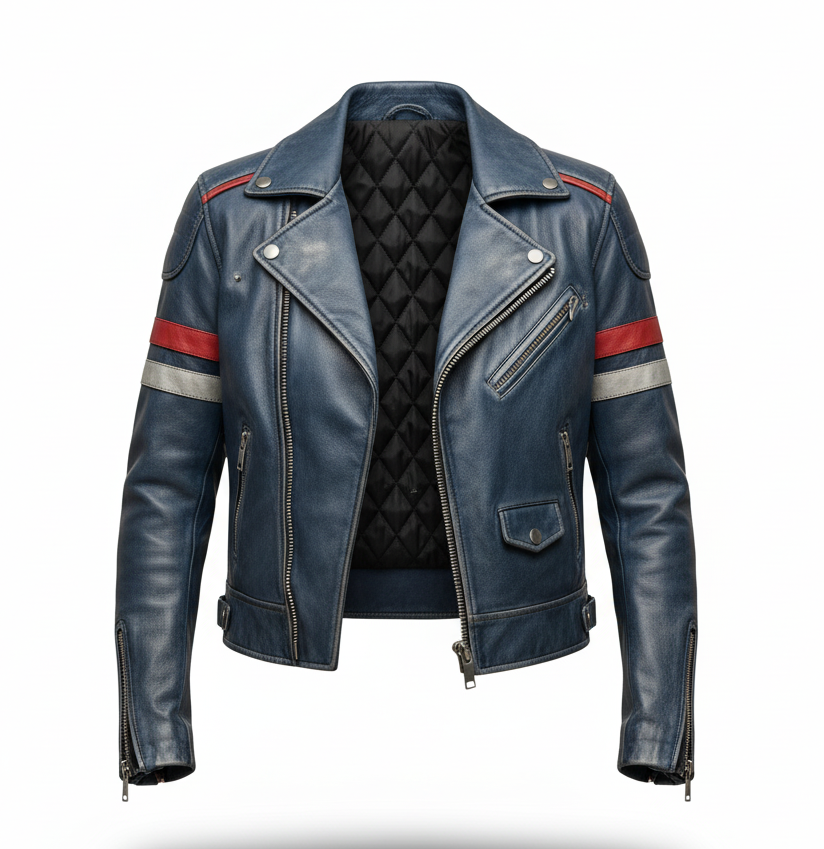 Be the first to review “Vintage Distressed Leather Jacket V1V2W Blue”